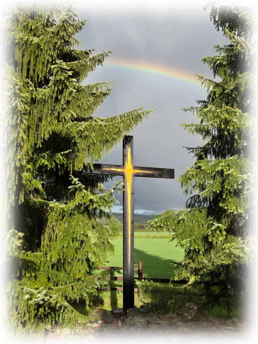 Men midt i denne verden rager det opp et kors. En dag for 2000 år siden sto det plantet på en høyde i Jerusalem. Dette korset rager fremdeles opp over all ondskap, synd og skam, og hver den som i tro ser opp til ham som hang der, vil få navnet skrevet i livets bok.