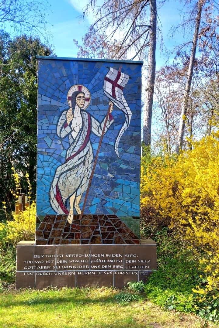 Den Opstandne Jesus med seiersfanen i bønnehagen på Kanaan i Tyskland